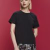 - épaules descendues et manches courtes