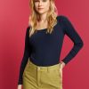 Esprit Belgique – Esprit haut côtelé à manches longues noir femmes DJX6JH88 manches longues