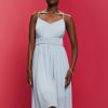 Esprit Belgique – Esprit recyclée : robe en mousseline à taille froncée marine femmes DJX6JH67 robes