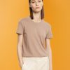 Esprit Belgique – Esprit t-shirt en coton avec logo brodé taupe clair femmes DJX6JH148 t-shirts