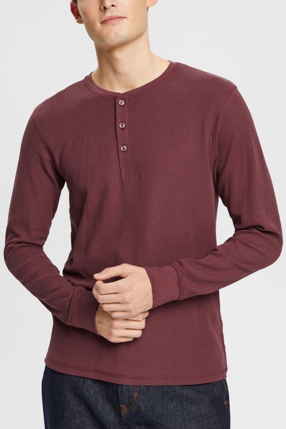 Esprit Belgique – Esprit chemise boutonnée en coton rouge bordeaux hommes DJX6JH814 chemises